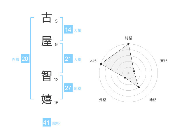古屋 智嬉さんを姓名の画数から五運を鑑定