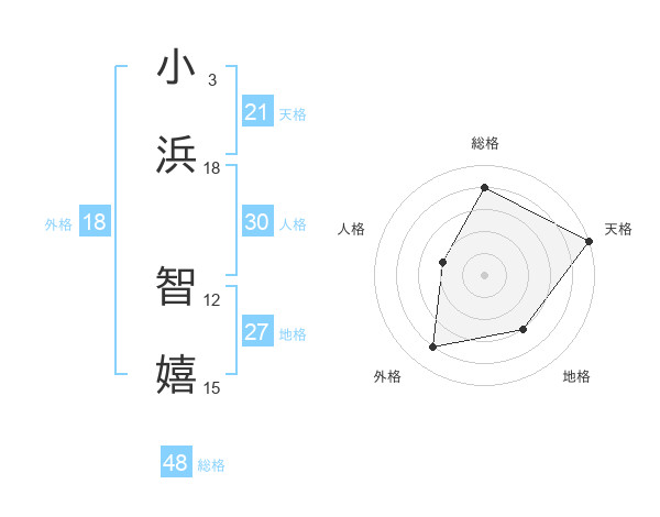 小浜 智嬉さんを姓名の画数から五運を鑑定