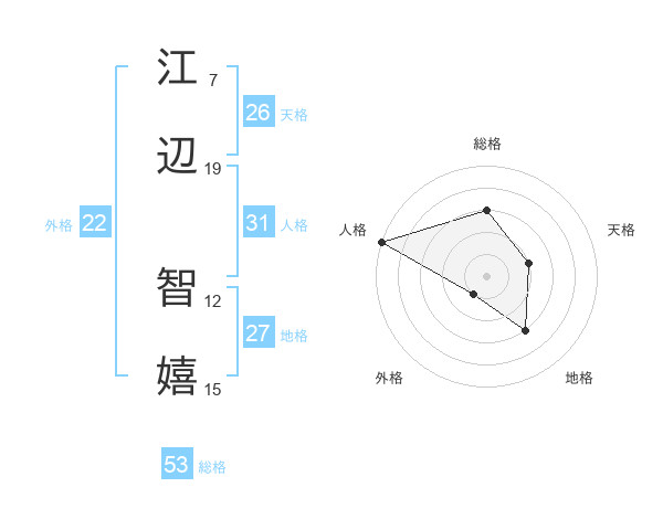 江辺 智嬉さんの外格は22画の1点!