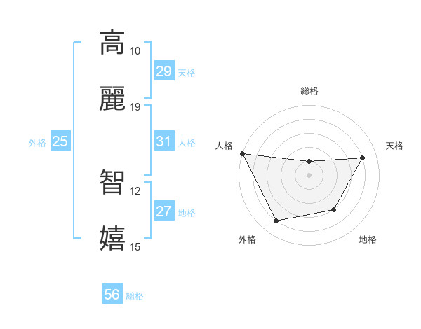 高麗 智嬉さんの天格は29画の4点!