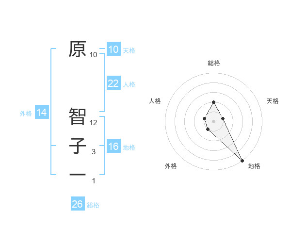 原 智子ーさんの人格は22画の1点!