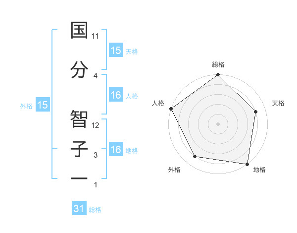国分 智子ーさんを姓名の画数から五運を鑑定