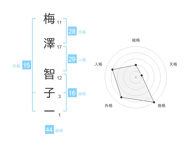 梅澤 智子ーさんの総格は44画の2点!