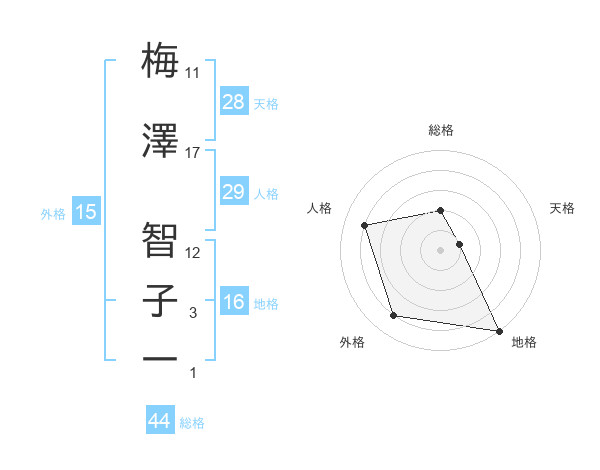 梅澤 智子一さんを姓名の画数から五運を鑑定