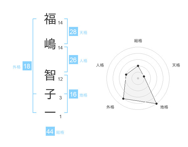 福嶋 智子一さんの地格は16画の5点!