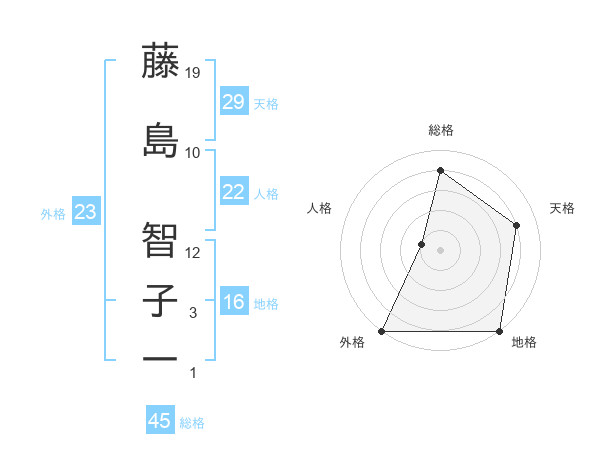 藤島 智子一さんの外格は23画の5点!