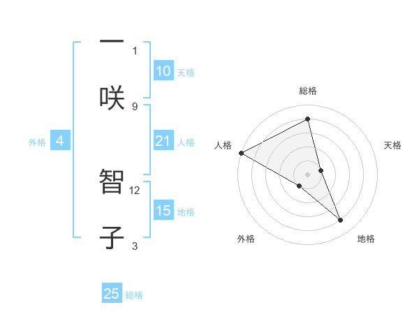 一咲 智子さんの総格は25画の4点!