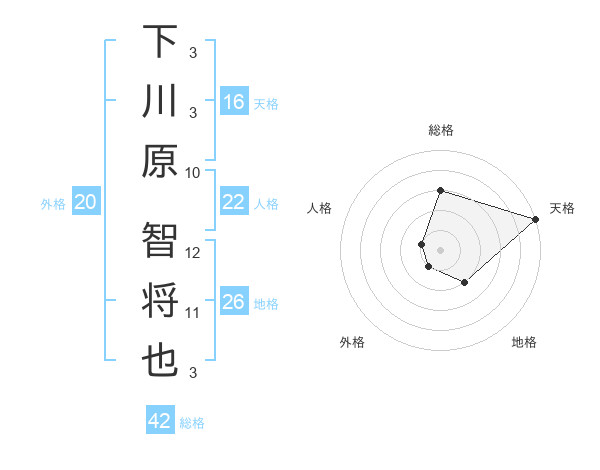 下川原 智将也さんを姓名の画数から五運を鑑定