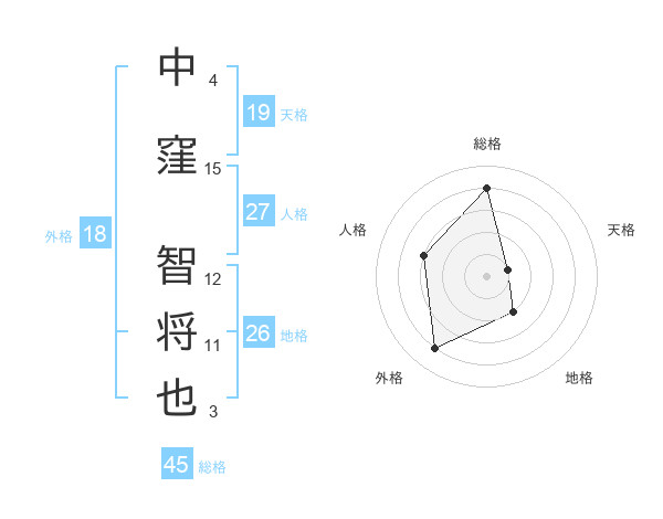 中窪 智将也さんを姓名の画数から五運を鑑定