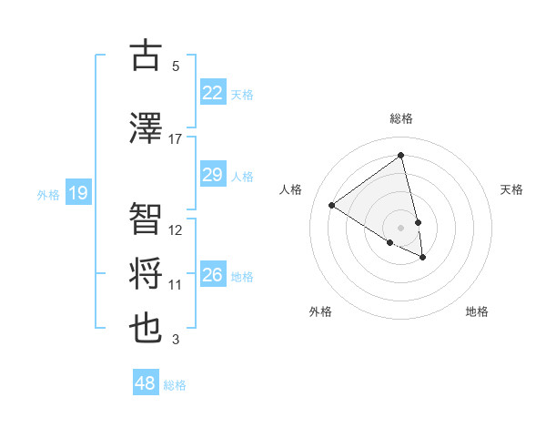 古澤 智将也さんの総格は48画の4点!