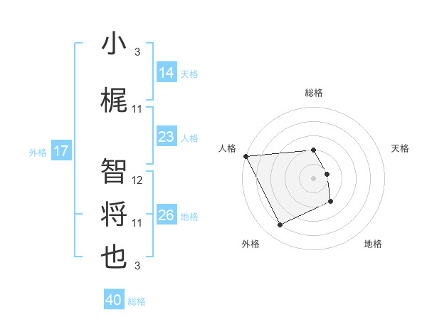 小梶 智将也さんを姓名の画数から五運を鑑定