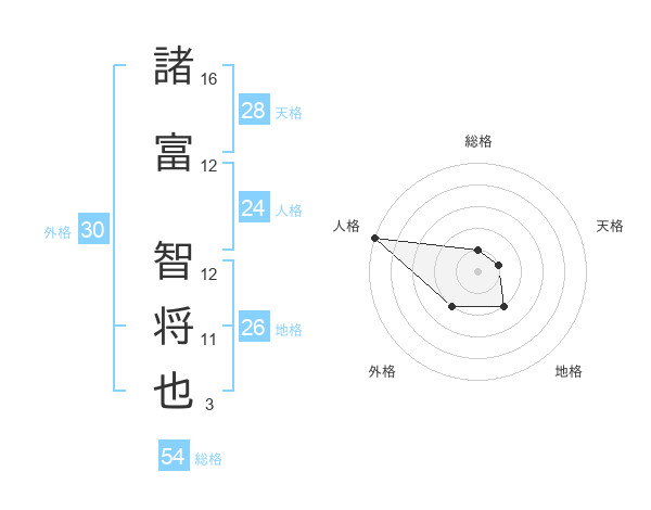諸富 智将也さんの総格は54画の1点!