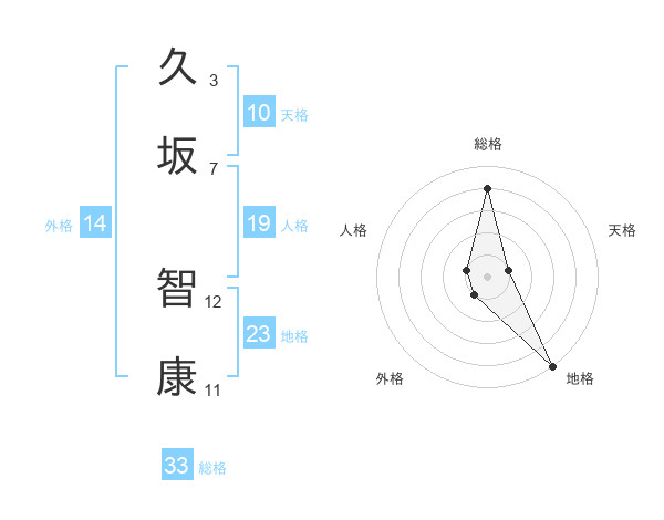 久坂 智康さんの総格は33画の4点!