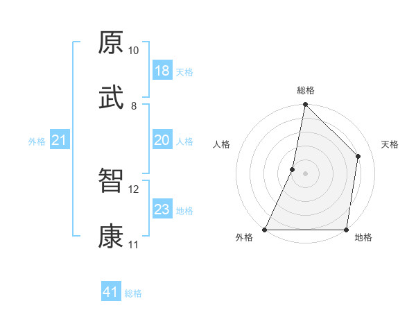 原武 智康さんの総格は41画の5点!