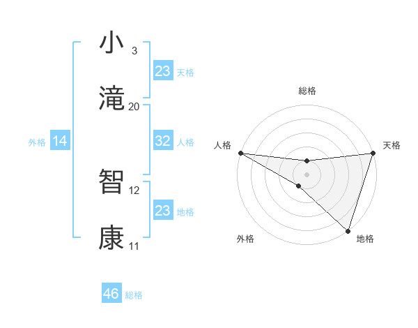 小滝 智康さんの天格は23画の5点!