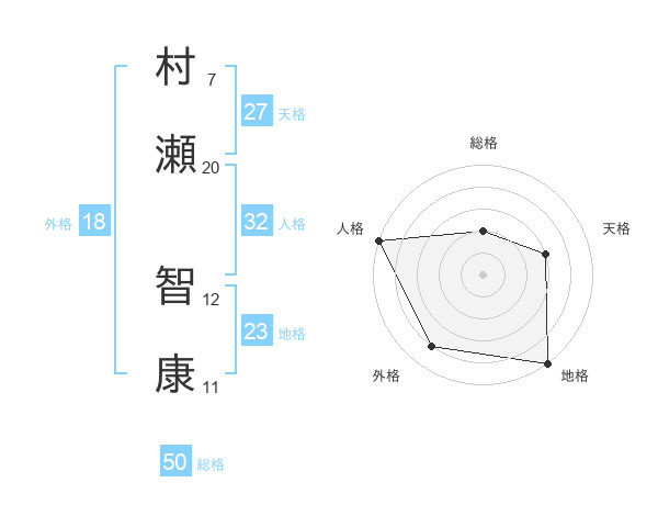 村瀬 智康さんを姓名の画数から五運を鑑定