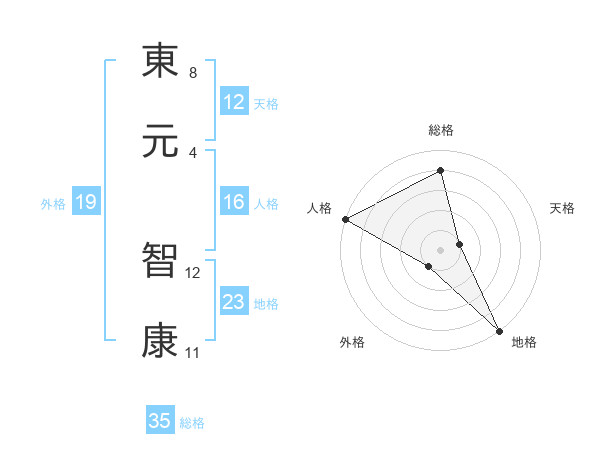 東元 智康さんの総格は35画の4点!