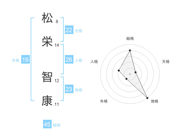 松栄 智康さんの総格は45画の4点!