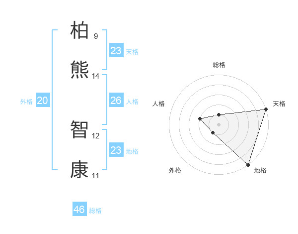 柏熊 智康さんの天格は23画の5点!