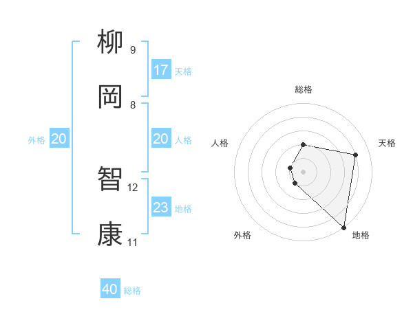 柳岡 智康さんの総格は40画の2点!