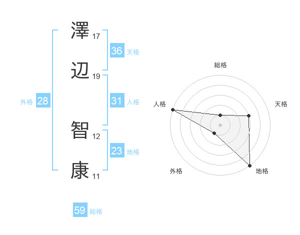 澤辺 智康さんの総格は59画の1点!