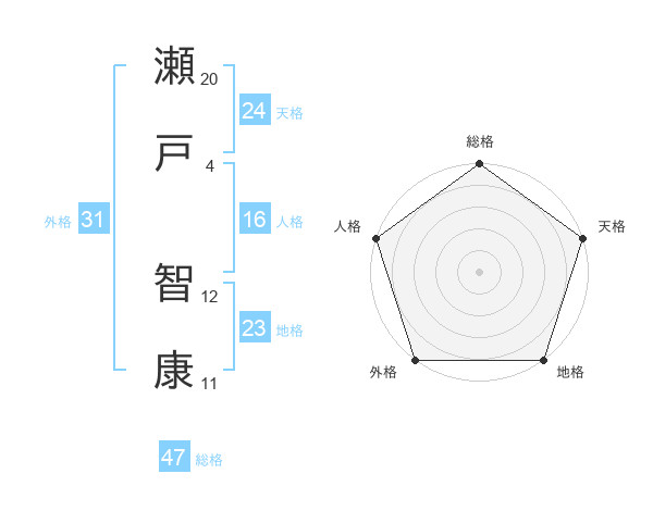瀬戸 智康さんの総格は47画の5点!