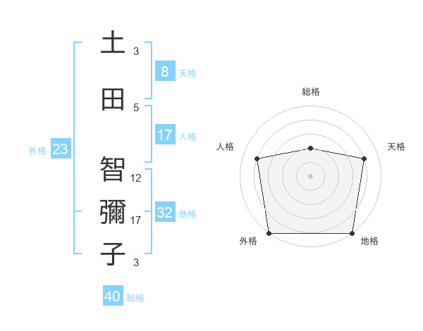 土田 智彌子さんの外格は23画の5点!