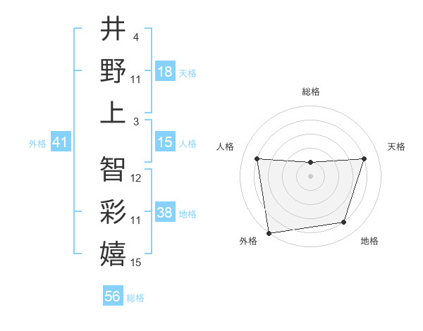 井野上 智彩嬉さんの外格は41画の5点