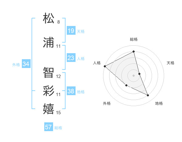 松浦 智彩嬉さんを姓名の画数から五運を鑑定
