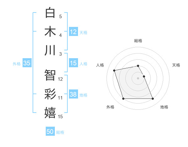 白木川 智彩嬉さんの外格は35画の4点!