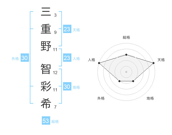 三重野 智彩希さんを姓名の画数から五運を鑑定