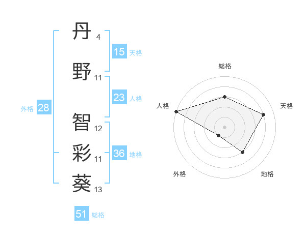 丹野 智彩葵さんを姓名の画数から五運を鑑定