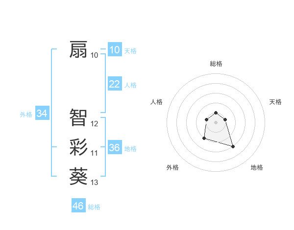 扇 智彩葵さんの総格は46画の1点!