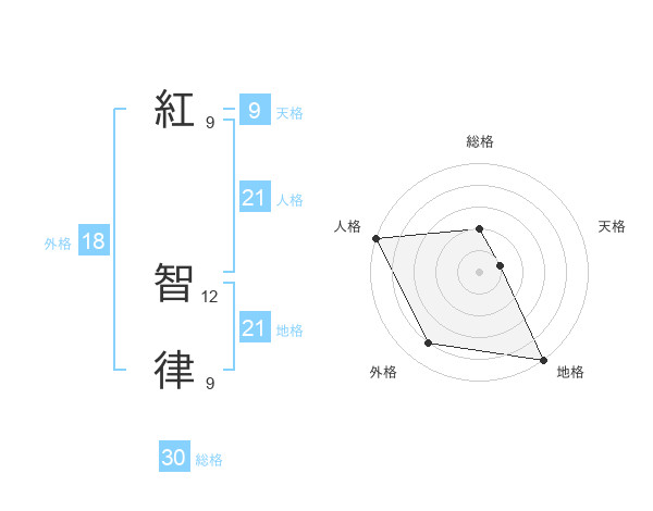 紅 智律さんの地格は21画の5点!