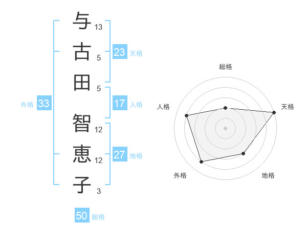 与古田 智恵子さんを姓名の画数から五運を鑑定
