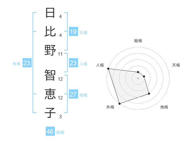 日比野 智恵子さんを姓名の画数から五運を鑑定