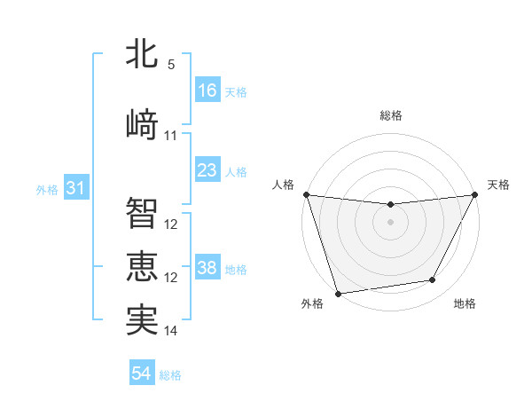 北﨑 智恵実さんの天格は16画の5点!