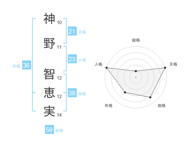 神野 智恵実さんの天格は21画の5点!