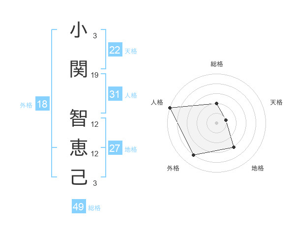 小関 智恵己さんを姓名の画数から五運を鑑定