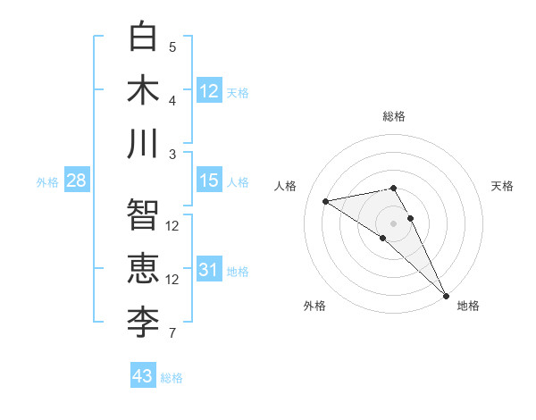 白木川 智恵李さんを姓名の画数から五運を鑑定