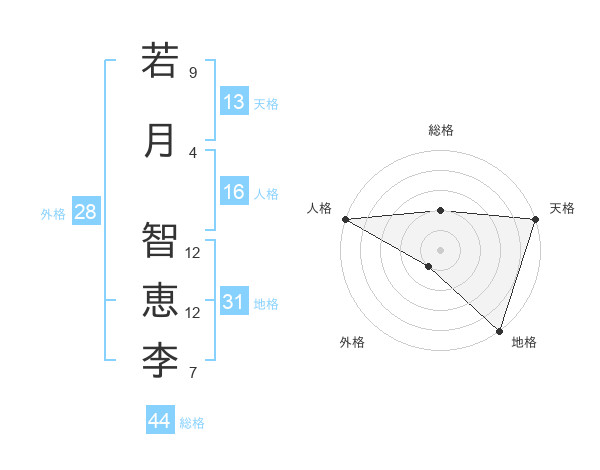 若月 智恵李さんを姓名の画数から五運を鑑定