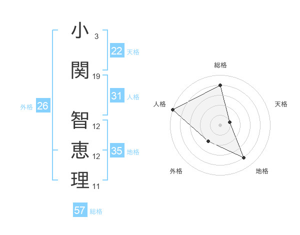 小関 智恵理さんを姓名の画数から五運を鑑定