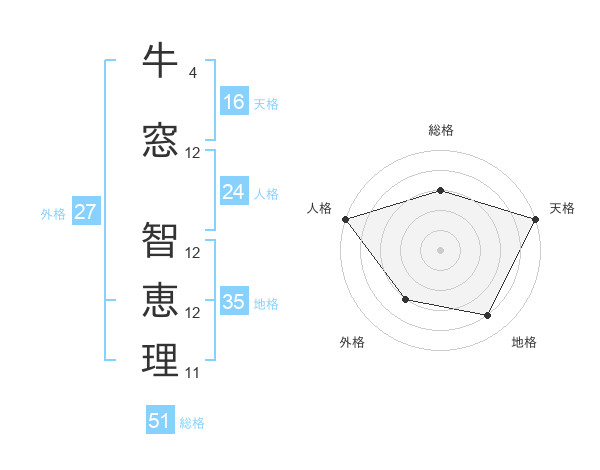 牛窓 智恵理さんの総格は51画の3点!