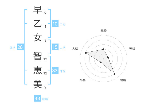 早乙女 智恵美さんを姓名の画数から五運を鑑定