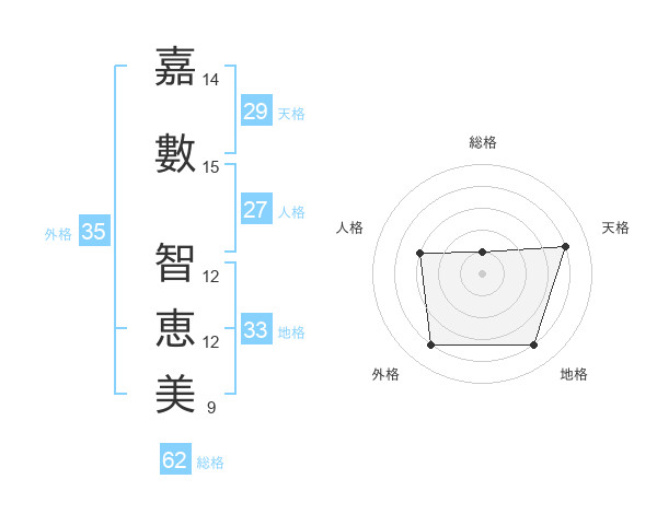 嘉數 智恵美さんの天格は29画の4点!