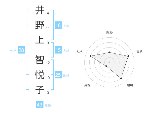 井野上 智悦子さんを姓名の画数から五運を鑑定