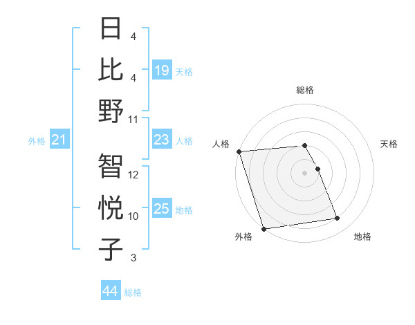日比野 智悦子さんの総格は44画の2点!