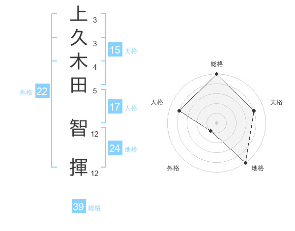 上久木田 智揮さんの総格は39画の5点!