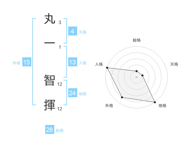丸一 智揮さんを姓名の画数から五運を鑑定