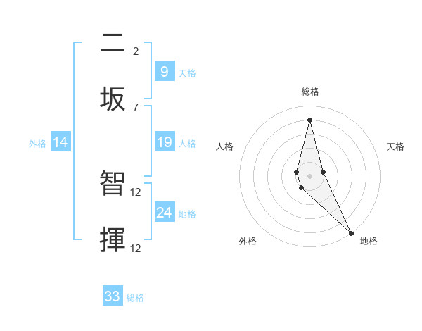 二坂 智揮さんの総格は33画の4点!